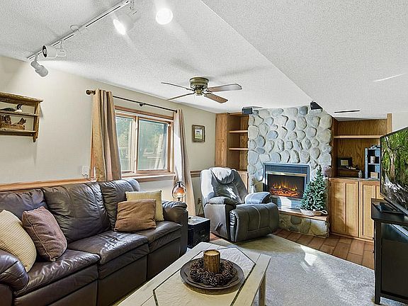 Lower-level fireplaceIn-ground sprinkler systemFour bedroomsPrivate wellLush lawn