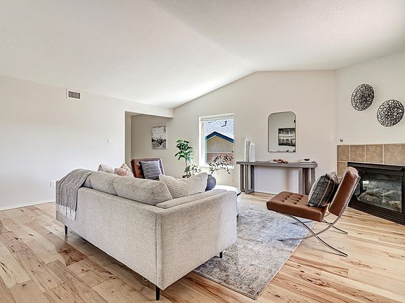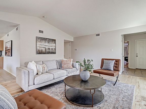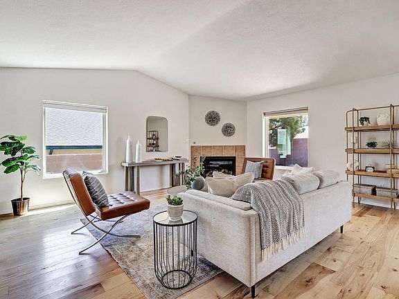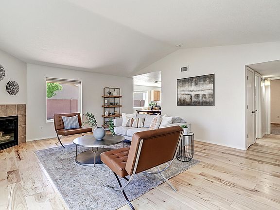 This charming one-story home has been beautifully maintained! The bright living room has solid hickory wood floors, raised ceilings & a gas fireplace. The eat-in kitchen is where everyone will want to gather with ample counter space, & updated stainless steel appliances, it opens to the back covered patio to entertain & enjoy the mountain views. The primary suite offers a peaceful retreat away from the rest of the bedrooms with blackout shades, garden tub, separate shower 7 a walk-in closet. All of this & refrigerated air with no HOA! Located less than a 1/4 mile to Marble Brewery & Rust Medical Center, & 1/2 mile to the Unser Gateway development project including Unser Pavilion & The Village with the new Market Street supermarket. Home was built for higher efficiency heating &cooling.