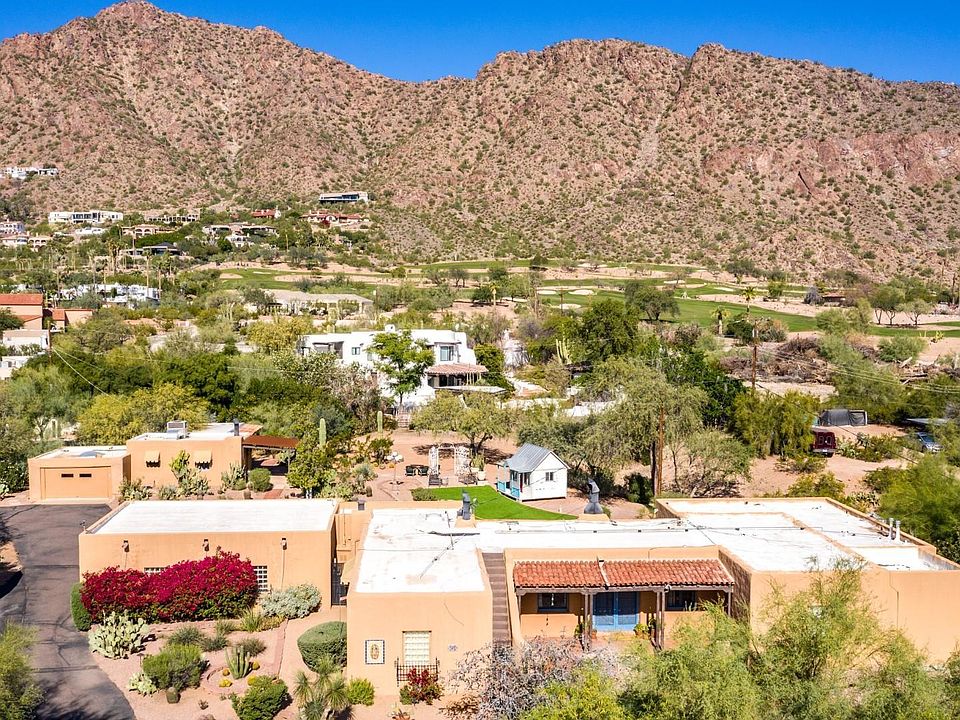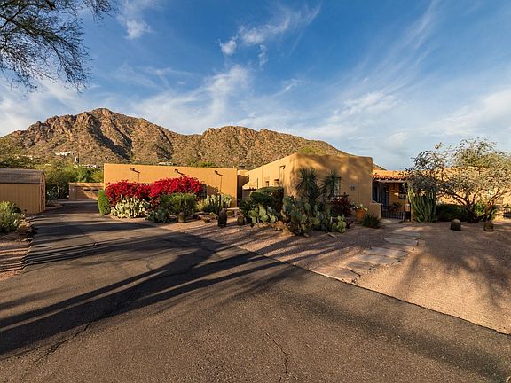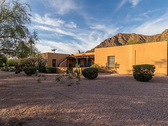 FINAL PRICE REDUCTION - LAND VALUE of 1.69 acres with magnificent views of Camelback Mountain! Price reduction in lieu of closing credits for repairs (recent home inspection findings available upon request). Continue to renovate and expand this charming 1929 adobe main residence (2,900+/- SF) and guest house (620+/-SF) or embrace the spectacular view and build your new estate in this premier Arcadia location! The main house boasts 3 bedroom suites (including split masters - one with its own office) each offers updated en suite bathrooms and walk-in closets. Wood burning fireplaces located in the living room and formal dining room. Wood beams, Saltillo tile floors and handcrafted Mexican tiles used throughout interiors. 3 car attached garage plus barn provide ample storage. The 1 bedroom, 1 bath guest house with wood burning fireplace and its own garage, is perfect for a home office, or nanny/in-law suite. Lot is approximately 208' wide by 350' deep. Main house is set back over 160 feet from Camelback Road! Tremendous value on an irreplaceable property!