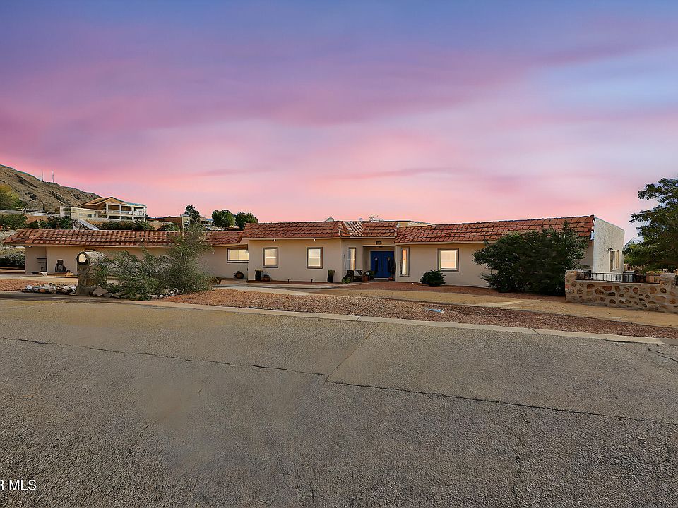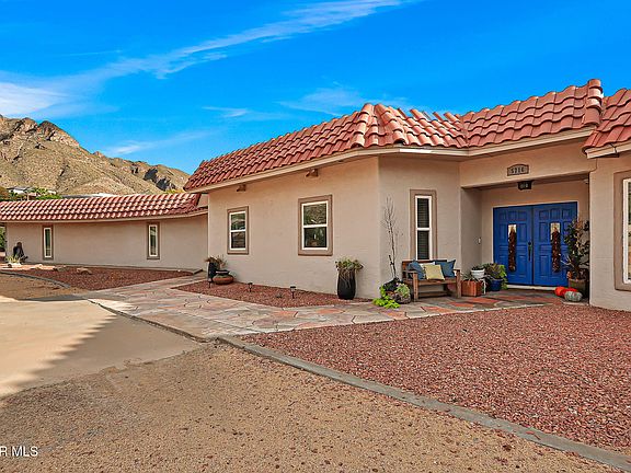Luxury living in one of El Paso's most prestigious West Side neighborhoods, perched on a corner lot near the mountain with sweeping valley views.This elegant single-story home offers five spacious bedrooms and three baths, including a grand primary suite and an oversized secondary bedroom with an extended walk-in closet.The open-concept living and den feature wood beam accents & a stone fireplace, perfect for upscale entertaining.The heart of the home is the expansive chef's kitchen—granite countertops, stainless steel appliances, five-burner stove, large island, recessed lighting, generous walk-in pantry, and a bright breakfast nook built for gathering.Hardwood and tile flooring run throughout, complemented by three refrigerated air units for comfort year-round.With charming curb appeal, a circular driveway,and three-car garage, this home blends elegance, functionality, and location.If you're searching for West Side prestige, panoramic views, and a showpiece kitchen made for culinary enthusiasts, this is it