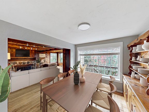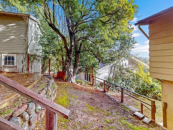 Step into timeless California charm with this beautifully updated 1925 cabin-like home, offering the perfect blend of rustic character and modern comfort. The main residence spans 1,538 square feet and showcases a welcoming stone fireplace, hardwood floors, wood windows, exposed beam ceilings, and classic paneling that reflect the home’s original craftsmanship. A remodeled kitchen with natural wood cabinetry and upgraded stainless steel appliances—including a gas cooktop, double ovens, built-in microwave, and dishwasher. The layout features three spacious bedrooms, one conveniently located on the main level and two upstairs with a full bathroom. The lower-level studio, offering 438 square feet, includes a private entrance, tile floors, fresh paint, a full kitchen, separate bathroom and a versatile space for guests, extended family, or rental income. Surrounded by stately oaks, the property captures the essence of nature with stamped concrete walkways, patios, and filtered views of downtown Oakland. A spacious two-car garage/storage unit sits at the top of the lot. Just minutes from downtown Montclair, this home offers the convenience of nearby shops, restaurants, and grocery stores, along with easy access to Highway 13 and a quick connection to Highway 24 for commuting.