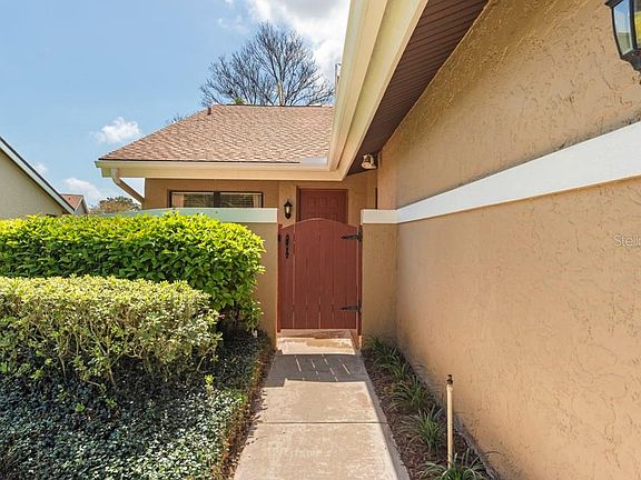 IF YOU LOVE THE LOOK OF A RANCH STYLE VILLA WITH PRIVATE COURTYARD, YOU ARE DEFINITELY NOT ALONE. The front courtyard serves as a transitional space that takes you from the outside world to the serenity of your own home. The private entrance opens to a small foyer that leads to a carefully designed floor plan that optimizes every inch of space. Tile and laminate flooring throughout hosts a 1300+sq.ft. layout, that is allergy resistant, easier to maintain and extremely durable. Walking into the main living area you'll hardly notice the laundry center tucked behind bi-fold doors. It's convenient when needed but hidden when not in use. You will also pass one of 3 SPACIOUS BEDROOMS. Because of its location this bedroom, with its own bath, makes an ideal room for guests. In between the sleeping area and bath is a retractable stairway that pulls down from the ceiling to provide accessibility to attic storage. Subtle wall colors, vaulted ceilings, glass sliders and trendy light fixtures dominate the atmosphere in the living and dining room combo. The feeling is roomy, fresh and inviting. A second bedroom with double doors offers tons versatility when you choose to use as a conventional bedroom, den or private office. It's simply a lifestyle choice based on personal need. The kitchen space has been designed to seat diners in front of two windows. The counter provides work space, gives the cook the chance to chat and makes clean up easy. Compact, yet efficient, it is equipped with great appliances, lots of cabinets, double sinks and allows you to cook and dine in the same space. All of the bedrooms in this home comes with ample closet space. The master has a large walk-in and an ensuite bath with a floor level step in shower. Glass sliders to the lanai bring in the sunshine; a great way to start your day and the water view is peaceful & relaxing. Built in 1989 of block and stucco, the roof was replaced 5/20 and a new skylight with warranty was installed at the same time. Enjoy the advantage of garage parking, no yard maintenance and an electronic door lock to keep your life simplified. Close to everything! Sarasota International Airport, University Town Center Mall and Shops, I-75, Sarasota and all it has to offer, and some of the best beaches in the country are only minutes away. The community neighbors with Longwood Run Athletic Club which offers access to 18 Har-Tru tennis courts, swimming, fitness, basketball courts, and sauna with a small fee to join. Longwood Park is practically next door with a covered picnic shelter, basketball, and ongoing programs open to the public so there is always something to do. This is your chance to make this your home...your way!