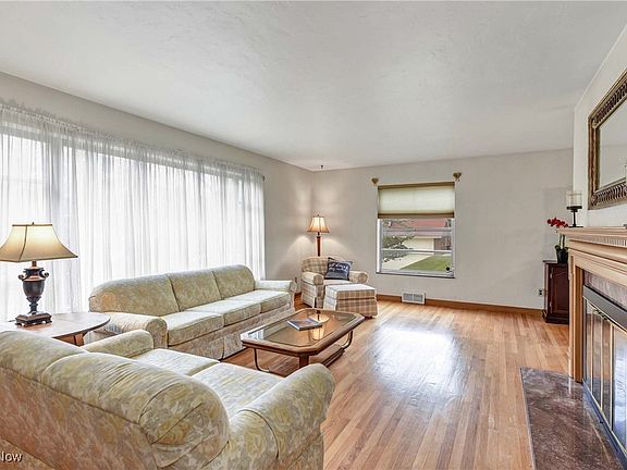 Long time one owner brick, cape cod home in a coveted neighborhood on the north end of Parma. This is not your typical Parma cape, with over 2300 sq ft of above grade living space, 3 possible 4 bedrooms, 2.5 bathrooms and a partially finished lower level. The charming first floor features original hardwood flooring, built-in bookshelves, gas fireplace with marble surround, marble window sills all in tact and a desire-able floor plan. The eat-in kitchen with ample cabinetry and counter space plus a built-in buffet and display cabinetry. Opens to a formal dining room and a bonus first floor potential office space at the back of the home. The beautiful front living room with tons of natural light, fireplace and built-ins, is ready for the next generation of family gatherings and memories to be made. Two great size first floor bedrooms, either of which could be a primary bedroom, both with large closets, overhead lighting and hardwoods. Tons of storage including a coat and linen closet in the hall off the tiled entry foyer. Full bath with original tile, tub/shower combination, built-in makeup vanity is a vintage masterpiece. Head upstairs to a massive second floor bedroom with continued hardwood flooring, two closets, plus bonus room space for nursery, bedroom or dream walk-in closet. Large half bath makes this a wonderful potential 2nd floor primary suite or incredible space for the kiddos. Once home to a family of 10! Lower level has tons of potential with enormous laundry, storage, workshop, additional shower/toilet and awesome rec space. Carpeted rec room has additional gas fireplace and a large built-in bar host to many holidays and celebrations. Paver patio and detached 2-car garage. Located across the street from Evergreen Lake in a neighborhood where you will find dog walkers, deer, geese and the occasional turtle. Minutes from Big Creek Parkway and the Metropark, Shnitz Ale, Shnitzel Haus and Chuppas Marketplace.