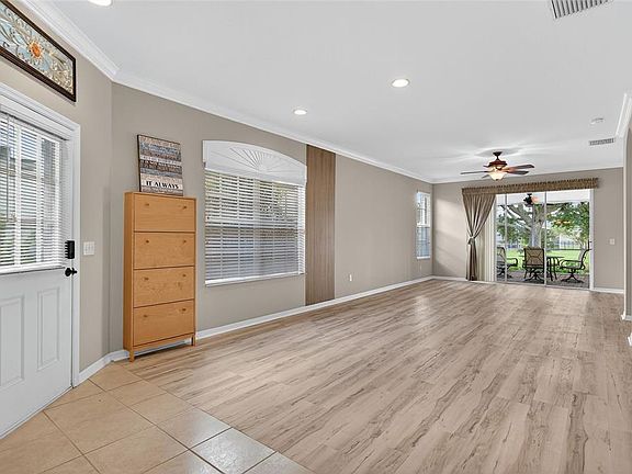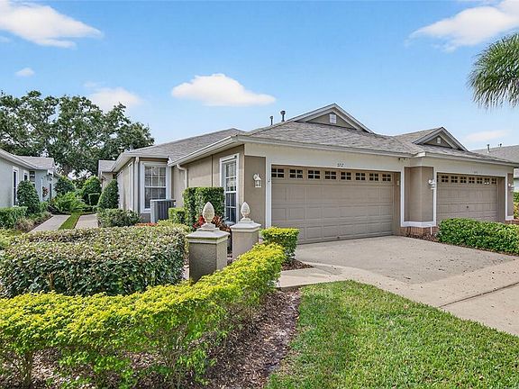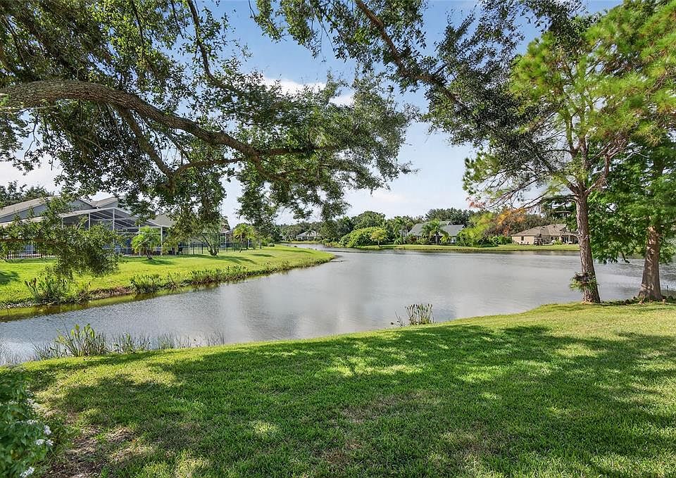 Discover serene living at its finest in this beautifully updated villa, ideally situated on a gated cul-de-sac in the sought-after Heronpark enclave of FishHawk Ranch. From the moment you arrive, you’ll be captivated by breathtaking pond views, where shimmering water and vibrant sunsets create a peaceful backdrop for everyday life. Step inside to an inviting open layout, enhanced by new premium Lifeproof vinyl plank flooring that flows seamlessly through all living areas and bedrooms. The expansive living room, framed with crown molding and expansive triple sliders, draws your eye straight to the water, filling the home with natural light and tranquil energy. The primary suite is a private retreat, thoughtfully extended to offer extra space for a home office, sitting area, or nursery. Enjoy peaceful pond views through triple sliders that open directly to the lanai. A tray ceiling with crown molding, his and hers closets (including a walk-in), and a spa-inspired ensuite with a double vanity, soaking tub, and a separate walk-in shower complete this relaxing haven. The kitchen is both stylish and functional, showcasing granite countertops, stainless steel appliances, solid wood cabinetry, and under-cabinet lighting. A pantry, breakfast bar, and sunny nook make this space perfect for both cooking and casual dining. Double doors open to a flexible second bedroom that easily doubles as a private home office, while a freshly painted third bedroom and full bath provide comfort for guests. Designed for convenience, the home includes wheelchair-accessible doorways and a spacious two-car garage with custom loft storage and dedicated hurricane shutter space. Enjoy your morning coffee or evening unwind on the screened lanai updated with stone pavers, where the peaceful pond views and colorful sunsets steal the show. Just steps away, the private Heronpark pool awaits, and residents also enjoy full access to FishHawk Ranch’s resort-style amenities—including six additional pools, tennis and pickleball courts, parks, trails, and a vibrant clubhouse. With exterior and lawn care included, this villa offers truly maintenance-free living—a perfect balance of comfort, elegance, and nature’s beauty. Don’t miss the chance to wake up to these stunning pond views every day—schedule your private showing today!