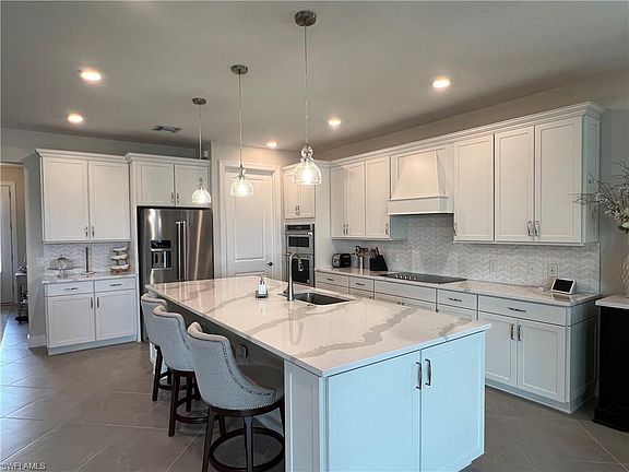 Beautiful fully furnished 3+den/3bath home. Over 2500sqft. Sleeps 7 (King, Queen, full sleeper sofa, Twin). Located in the Dell webb 55+ golf community. The fully equipped clubhouse offers an exceptional range of amenities, including a fitness center, a resort style pool with beach entry, laplanes, sauna and golf course. Inside, the home offers plenty of room to entertain, with a spacious living area and open concept kitchen. If you are still lacking space for entertaining open the large pocket zero sliding doors to include the screened-in lanai with your party space. You'll find plenty of natural light pouring in through the large windows, and the den is perfect for a home office. Ave Maria offers many other amenities: a town center with various events throughout the year, Ave Maria University, Water Park, trails, shopping, dining, dog parks, community parks and more.
