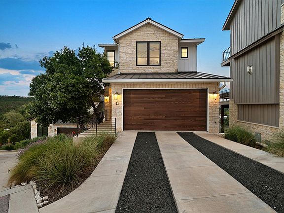 Welcome to epic views from all three levels of this stunning home in The Pinnacle, an exclusive community of 13 luxurious homes offering unparalleled views of the golf course and the scenic Texas Hill Country. This gated community is adjacent to the prestigious Great Hills Country Club, with a social membership included for residents to enjoy access to the clubhouse, fitness center, pool, and a community dog park. The HOA takes care of landscape maintenance, irrigation, and gate access, allowing for a worry-free lifestyle. Located within the highly sought-after school zone of Hill Elementary, Murchison Middle School, and Anderson High School, this community offers access to some of the most highly rated and desirable schools in the area. This exquisite 3-level home, built in 2020, spans 2,410 square feet with 4 bedrooms and 2.5 bathrooms. From the moment you step inside, the attention to detail and luxury are evident, with rich wood flooring throughout and an open concept layout designed for modern living and entertaining. The island kitchen is a chef's dream, equipped with stainless steel appliances, including a built-in oven, microwave, gas cooktop, and a stylish tile backsplash. It seamlessly flows into the living and dining areas, creating the perfect gathering space for family and friends. The second floor is a private retreat, with the spacious primary bedroom occupying half of the space, complete with an en-suite bath featuring a separate oversized walk-in shower, a soaking tub, double vanity, and a massive walk-in closet with custom built-ins. A loft area and additional bedroom complete the second level. On the third floor, you’ll find two more bedrooms, each offering access to one of the home’s three balconies, where you can soak in the breathtaking views.