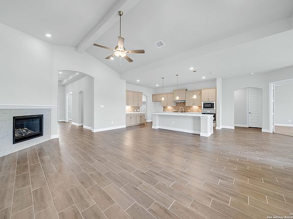 Welcome to the Gibbons floor plan by Bellaire Homes, a beautifully crafted residence situated on a coveted corner homesite. This spacious one-story home is the largest in the community, offering over 3,000 square feet of thoughtfully designed living space with 4 bedrooms, 3.5 bathrooms, and premium upgrades throughout. Inside, you'll find soaring 8-foot doors, a private office, and a versatile game room perfect for work and play. The chef's kitchen is equipped with built-in appliances and elegant granite countertops, making it ideal for both daily living and entertaining. The luxurious owner's retreat features a spa shower and an oversized walk-in closet, providing comfort and convenience. Additional highlights include a covered patio for outdoor living and timeless details that elevate the home's style. Photos are of same plan not actual Home.