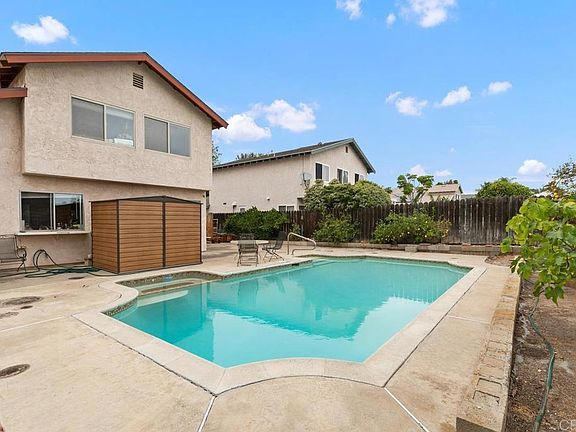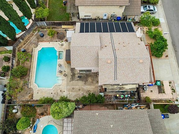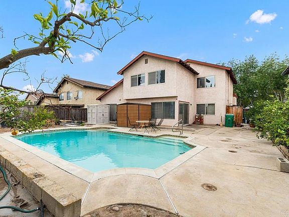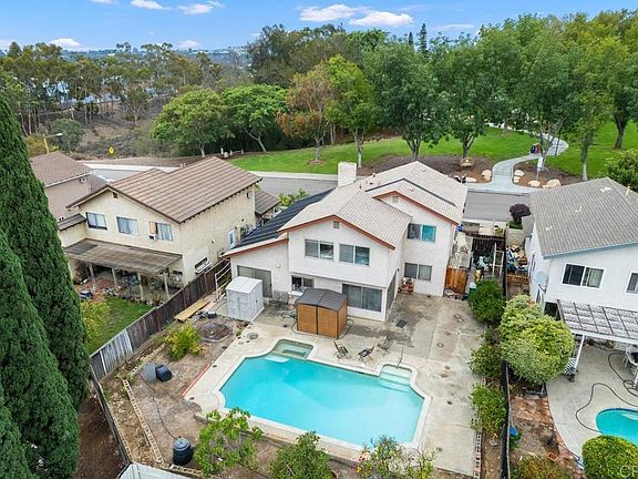 Tierrasanta home in an unparalleled location! Immediately across from newly updated Villa Monserate Park and an open canyon, the house is just a short walk to Vista Grande Elementary School. Enjoy sunsets over the park and canyon from the west facing balcony off the master bedroom, and view mountains from the three east facing bedrooms. The house boasts 1,887 spacious square feet of living space with 4 bedrooms upstairs and 1 bedroom downstairs. The kitchen and dining area share an open floor plan, while the formal living room has vaulted ceilings and cozy fireplace. The 6,300 square-foot lot boasts a private fenced-in low-maintenance backyard for you to relax next to the sparkling solar heated swimming pool and fruit trees. Bring your personal touch and customize this home to your taste. Conveniently located to hiking trails, shopping, highways, and award winning restaurants and schools!