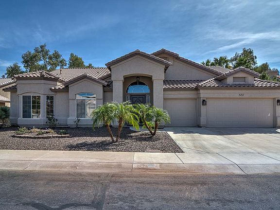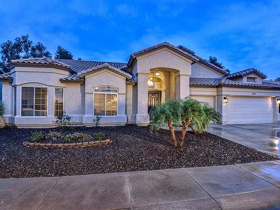 Gorgeous home located on the 15th hole of the Arrowhead Legends Golf Course! With meticulous attention to detail this home has been highly updated - new hardware on the doors, switch plates, LED dimmer switches, whole house surge protector, electrical breakers, Canned lights are now LED, new light fixtures on exterior of home, Minka ceiling fans inside and Fanimation fans outside, fresh paint and new carpet, new Cafe Series kitchen appliances, new American Standard Gold Series a/c furnace units with air cleaners installed, new 50 gallon Ruud Hot water heater, New ecowater conditioner, and new reverse osmosis system - this home does not disappoint! A grand foyer greets you when you enter this home with windows surrounding the front door, soaring 14 foot ceilings
