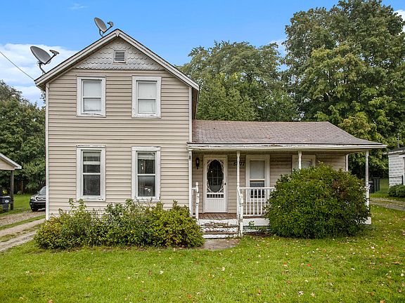 Nestled in the Village of Mattawan! 2 bedroom plus office/bonus room, one bath home. Spacious living room, main floor primary with absolutely humungous walk in closet/office/nursery. Kitchen offers open shelving, eat in dining space and access to the mudroom and main floor laundry! Upstairs is the large second bedroom with bonus space for office/playroom/whathaveyou! This home has both front and side porches, as well as a large deck over looking the fenced-in backyard. For added storage, there is an adorable barn-styled garage with upper loft.