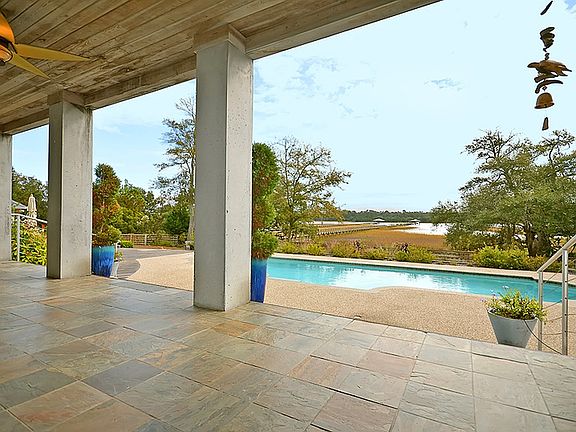 Locating a newer construction, deep water home within 25 minutes of historic Charleston can be very challenging, and with very limited options for sale around the Charleston area, this custom built, contemporary, 4500 sqft ICF(insulated concrete construction form) hits the mark on all points of location, construction quality, finishes and amenities. As you enter this handsome home through custom mahogany doors, you are immediately drawn into a light filled living room which is enhanced by large windows that provide incredible saltwater marsh and water vistas. The centrally located fossil stone fireplace adds warmth and ambiance to this well proportioned living space. From the spacious living room, you are immediately drawn to clean, eloquently designed chef's kitchen which has been professionally outfitted with quality, energy efficient appliances, including 2 Bosch dishwashers, 2 Dacor convection ovens, a Miele steam oven, 2 Gaggenau glass cook tops, a Viking refrigerator and a Dacor warming oven. There is plenty of counter space to prep and serve food, as well as ample cabinet space for storage. Adjacent to the kitchen is a relaxing sunroom with panoramic views and a great place to enjoy drinks. The main floor graciously provides 3 well proportioned and comfortable bedrooms, accompanied with 2 contemporary styled bathrooms. The upstairs master suite level is designed for extraordinary comfort, and it is accompanied by a uniquely designed fireplace which adds a warm ambiance to this clean space. The views from the master are spectacular! The simple, but sophisticated master bath is designed with quality stone finishes, double vanities, and a gracious master closet with plenty of shelving and storage. There is a 2nd floor, cedar lined laundry room which is easily accessible and convenient for use. There are 2 very large rooms on the ground floor with a wetbar, wine cooler and a full bath. This is a great space for an office, game room or a mother in law suite. An elevator services each of the 3 floors. A sliding glass door on the first floor opens and allows convenient access to a beautiful pool surrounded by a very spacious deck made of IPE. The pool can be heated and used during the winter months by an underground propane tank. Attached to the home is a finished, 2 car garage as well as a heated and cooled storage space. The owners have installed a Perkins diesel generator to run electrical and mechanical systems in the unlikely event of a power failure. There are electrical hurricane shutters on many windows of this home and this ICF concrete construction make it one of the most solidly built homes in Charleston County. This beautiful home provides a true deepwater dock which is approximately 800 ft and runs straight out to the ICW. This custom dock includes a 10k boat lift and floater, and there is plenty of water at low tide. This is a must see for a buyer who appreciates quality, style, design and wants great deep water access!!