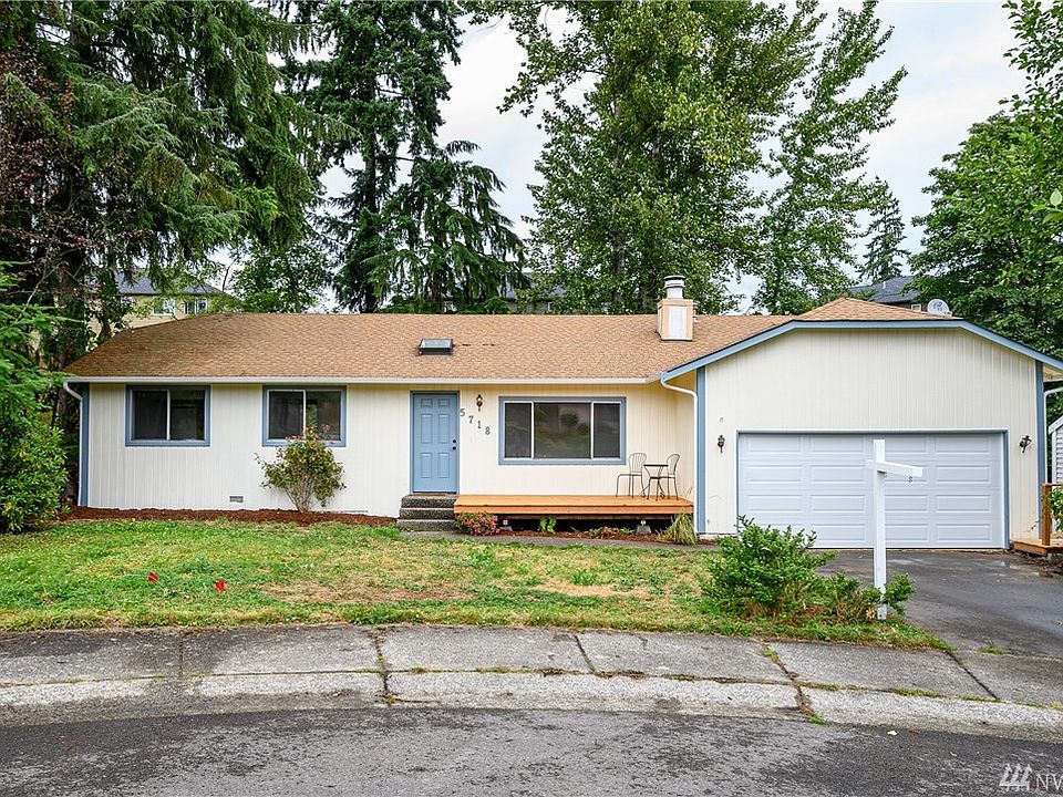 Single floor home in great shape in a fantastic neighborhood! Refreshed interior w/ new Lifeproof plank floors, carpets, trim, paint, lighting, kit. counters, sink, SS appliances, bath floors! Also, new front porch, side deck, and garage door! Large rear deck overlooks a tree'd backyard with a small creek, and it is so very quiet! Large bonus room off deck, skylights, fireplace, lots of parking! Trail to Briar St, minutes to Burke Gilman trail! Please see the 3D video tour! Motivated seller!