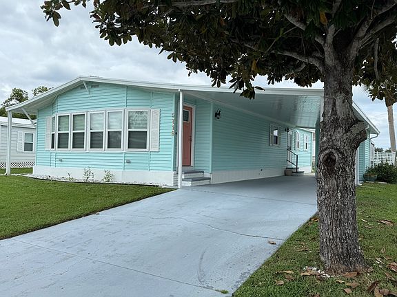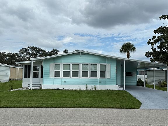 THIS HOME IS ON LEASED LAND WITH AN APPROXIMATE MONTHLY LOT RENTAL FEE OF $1600 FOR THE NEW OWNER. PLEASE READ BELOW FOR ALL INCLUSIONS AND DETAILS. PLEASE CALL THE LISTING AGENT DIRECT FOR ALL SHOWINGS. Step into comfort and style with this 1988 double-wide manufactured home, fully renovated in 2020 and located in the vibrant, amenity-rich community of Camelot East Village in Sarasota. Offering 1,352 sq. ft. of living space, this home is designed for both relaxation and entertaining, with an open, light-filled floor plan and thoughtful upgrades throughout. Inside, soaring vaulted ceilings and large new double-pane windows allow natural light to stream in, creating a bright, airy, and comfortable atmosphere. The spacious living room is anchored by a stacked granite stone fireplace, complemented by whitewashed tongue-and-groove ceilings and shiplap accents for a designer touch. The gourmet kitchen is a chef's delight, featuring a large center island, tile backsplash, stainless steel appliances, and upgraded cabinetry that blends functionality with modern style. The home comes fully furnished in a colorful, stylish turn-key package, allowing you to simply move in and enjoy. Additional highlights include: Luxury vinyl plank flooring throughout for durability and elegance - Textured drywall, new doors, trim, and baseboards - Updated electrical with new fans, lights, switches, and outlets - Interior laundry room with a stack washer & dryer plus additional storage cabinetry! The guest bedroom offers a roomy walk-in closet and pairs perfectly with a completely updated guest bath, showcasing fresh finishes and modern fixtures. The owner's suite is oversized and private, with an expansive walk-in closet and a spa-like ensuite bath featuring double vanities, a private toilet and shower area, a glass shower door with upgraded hardware, and a linen closet. Step outside to enjoy Florida living at its finest. A brand-new 2025 enclosed lanai with impact windows and dual entries provides year-round comfort, while the open rear patio invites you to relax and take in serene lake views. For convenience, this property also includes a covered carport and an outdoor storage shed-perfect for bikes, tools, and beach gear. This home is truly move-in ready, offering bright interiors, stylish updates, comfortable living spaces, and scenic outdoor amenities. Don't miss the opportunity to make this gem in Camelot East Village your new Sarasota retreat! Call for a private tour! CAMELOT EAST VILLAGE is a pet friendly, age qualified (55+), gated community which offers resort style amenities, large heated pool and spa, outdoor sports courts, outdoor BBQ and kitchen, exercise facility, technology center, game rooms and monthly events and activities to suit your needs. Monthly lot rent of approximately $1600 includes your property taxes, water, sewer, weekly trash and recycling pick up as well as lawn care, trimming, blowing and irrigation. All listing information is deemed reliable but not guaranteed. BUYER TO VERIFY ALL INFORMATION.