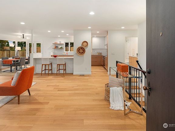 Live in the middle of everything Bryant has to offer. Walk to University Village, Met Market, PCC, Bryant Elementary, restaurants, and breweries. Blocks from the Burke Gillman trail. Full professional remodel down to the studs. Enjoy all the comforts of a new home in a lovely mid century envelope. This beautiful home includes 5 bedrooms, 3 bathrooms, sustainable white oak floors, polished concrete in the lower level, beautiful heated tile and terrazzo in the bathrooms, ample storage and so much more. Entertaining space in the newly landscaped and fenced yard with patio and two grass areas. Two off street parking spaces accessed in the alley with wiring for EV car charger. Primary bedroom with walk in closet and en suite. All new systems.