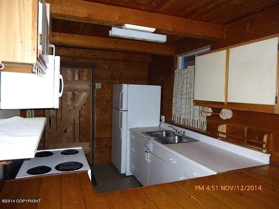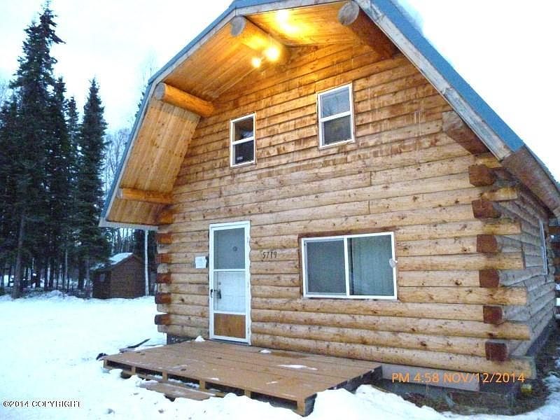 Cute 2 story log home with large bedroom in back and 3 rooms upstairs that could be a family room and 2 bedrooms but they are pretty small with non-egress windows. Laminate flooring in living room, 2 Monitor stoves, huge garage, and large open pole shed.