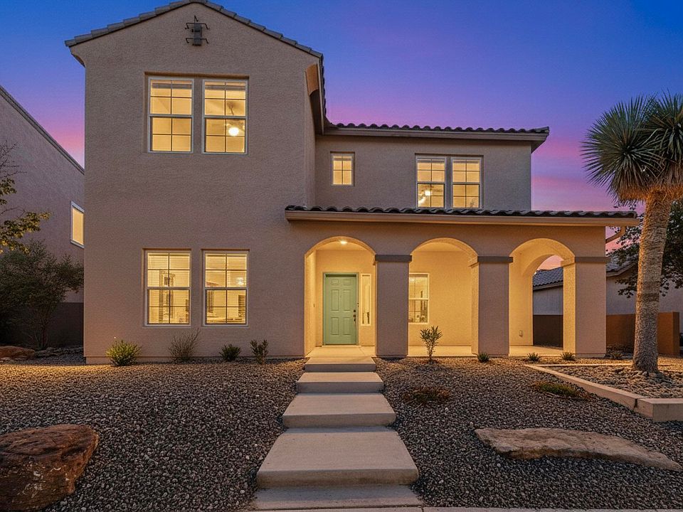 Welcome to this stunning former model home showcasing modern updates and thoughtful features throughout! This spacious 4-bedroom, 2.5-bath residence offers both comfort and style, starting with a paid-off solar system, a huge benefit for energy savings and long-term cost efficiency. Step inside to find brand-new carpet, updated lighting and hardware, and a bright, welcoming layout perfect for everyday living or entertaining. The home's curb appeal shines with fresh xeriscape landscaping, offering low-maintenance beauty year-round. The three-car tandem garage has been upgraded with new epoxy flooring, adding both durability and a sleek finish. With plenty of space, modern updates, and energy efficiency, this property is move-in ready and waiting for its next owner to enjoy!