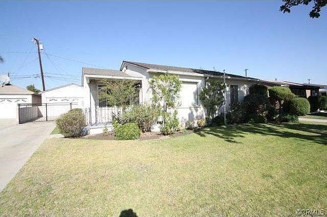Traditional home with 4 bedrooms and 2 bathrooms and large yard. Kitchen features built-in booth with table and a gas stove.Freshly painted, new vinyl in kitchen, and new carpet throughout. Rent includes gardener.Washer & Dryer in 2 Car Garage.Tenant pays own utilities.