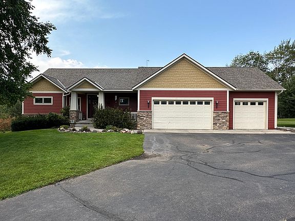 Beautiful 3 bedroom,3 bath McCormack built rambler style home on 3 acres with custom 40x60 outbuilding w/16' sidewalls. Outbuilding consists of 5 offices, each room is finished off nicely and should be considered as finished sq ft a 1/2bath & a workshop in the back half (28.8x38.1). It is plumbed with in floor heat. More walkable loft storage upstairs. The home has a beautiful kitchen with ss appliances and tile backsplash. Off the kitchen is a 14x16 4 season porch with wood fireplace. The living room has a custom stone dbl sided fireplace. The primary has a private bath with dbl sinks, jacuzzi tub, separate shower, granite counters and tile surround. The LL consists of 2 bedrooms, a family room with a wet bar that w/o to a stamped concrete patio, a full bath and a large storage/utility room. There is central vacuum and the yard is irrigated. There is also a 3 stall garage with hot and cold softened water. The 3 acres has many apple trees and tons of wildlife.