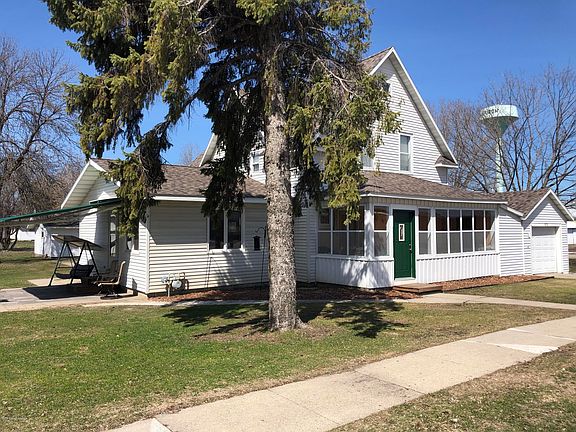Great corner lot property in Audubon! 4 BR/2 Bath house sits on 0.34 acres. Walk in through the 3 Season porch and explore all this home has to offer. Extremely well kept and flows nicely on the main level. Kitchen cabinets and walls painted in 2018. Updated natural gas/forced air furnace and Lennox central air system. Main level addition consists of a Living Room, Bath/laundry with walk-in massage tub, and Mechanical closet. Original hardwood floors, tile in kitchen, and laminate in the addition. Spray foamed and finished attic bonus room. Outside the deck was replaced with a paver patio and can be shaded with the sunsetter awning. Plenty of storage for vehicles and toys with 2 detached garages. The 26x40 shop has an earth stove (wood burning) with workshop space. Just 40 min from Fargo!