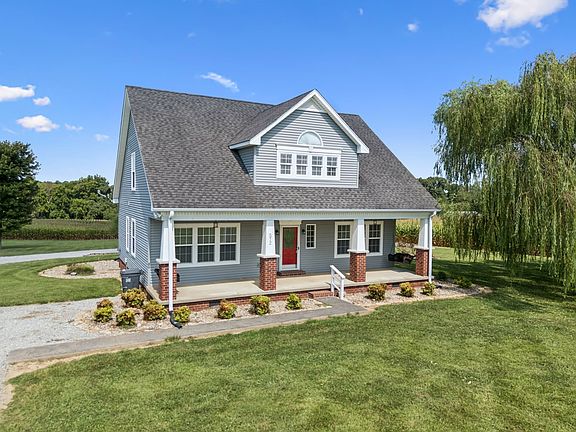 Surrounded by picturesque farmland, this charming retreat offers the perfect blend of country serenity and modern comfort. The impressive 48x27 detached garage/workshop is ideal for car enthusiasts, hobbyists, or anyone needing serious storage space. Step inside to find generously sized bedrooms, including a main-level primary suite, two bedrooms up PLUS a dedicated office//hobby room—perfect for remote work or creative pursuits. Unwind on the 36x11 screened back porch overlooking peaceful views or sip sweet tea on the spacious covered front porch with dual swings. Enjoy the rare combination of tranquility, pastoral charm and lower costs--NO HOA, no city taxes, no sewer bill. This home has it all!