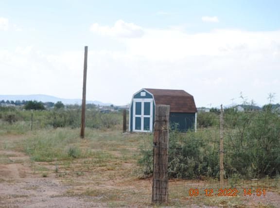 Nice corner lot at junction of Oasis and Prescott Anthony (both paved), narrow lot but very deep, includes a small morgan building already installed, partially fenced and ready to build or place a mobile home.