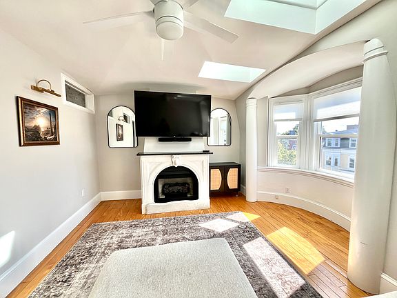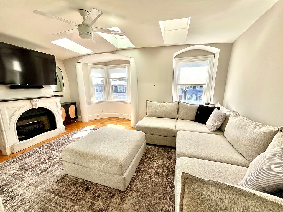 Penthouse living in one of the most desirable locations in South Boston! Situated on the East side, this 1-bed, 1-bath top floor condo sprawls over 700 sqft leaving ample space for a work from home lifestyle. FULLY FURNISHED, custom kitchen featuring spacious granite countertop and stainless steel appliances (2023-2025) including gas stove! Large living room flooded with light includes updated windows, skylight, and gas fireplace. King bed, sit-to-stand desk, bar stools and massive sectional. Large primary bedroom includes ample storage and views of the Boston skyline, including holiday fireworks over the Boston harbor!
