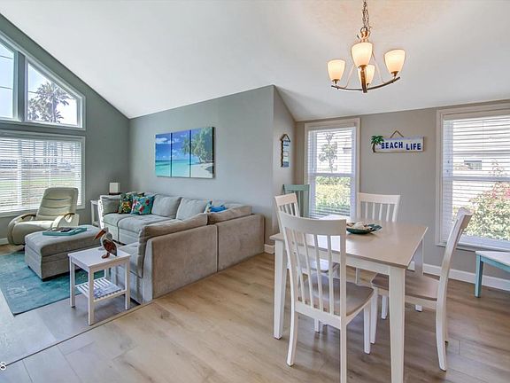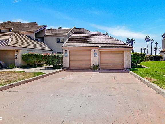 Stunning coastal oasis situated directly across from the picturesque Port Hueneme Beach & Pier. This exceptional 2BR/2BA single level END unit on the ground floor offers easy access with no steps. The interior boasts waterproof laminate flooring throughout, new Milgard dual pane vinyl sliders and windows throughout, a remodeled kitchen featuring Quartz countertops, beveled subway tile backsplash, a large single bowl, deep stainless steel sink, dishwasher, refrigerator and gas range. Rare vaulted ceilings grace the first floor, while the bedrooms are equipped with ceiling fans for added comfort. The bathrooms showcase new vanities with marble countertops, a large tub with marble like enclosure, and a separate remodeled shower stall, also with marble like tile floor and enclosure in the guest bath. Relax in the sunken living room by the gas/wood burning fireplace, or step outside to the private patio off the living room and master bedroom to savor BBQs, ocean breezes, and stunning sunsets. Convenient in-unit laundry closet includes washer and dryer. Enjoy fantastic clubhouse amenities such as an indoor pool, year-round heated spa, sauna, gym with separate cardio and strength training rooms, recreation area with ping pong, foosball, and pool tables, as well as a banquet/private party area with a fully equipped kitchen and outdoor BBQ space. Experience resort-style living with this incredible property that truly feels like a vacation retreat! Don't miss the opportunity to see it in person