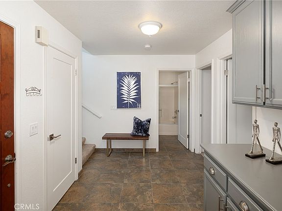 Step inside to find a bright, open layout filled with natural light. The main level features plush-carpeted bedrooms and a modern interior with stylish gray cabinetry, sleek tile flooring, and a versatile floor plan that works beautifully for both everyday living and entertaining. A thoughtfully designed entry hallway adds functionality with a built-in drop zone—perfect as a coffee bar, mail station, or decorative feature.