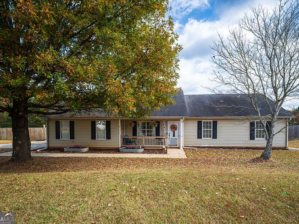 Welcome to quiet country living just minutes from all the conveniences of McDonough. Sitting on 2.67 private acres, this charming ranch offers an updated interior, a fully fenced backyard, and plenty of room to spread out, inside and out. Step into a bright, open concept living space with updated flooring, a cozy fireplace, and great natural light. The kitchen has been beautifully refreshed with white cabinetry, modern hardware, granite countertops, stainless steel appliances, and a spacious island, making everyday cooking and entertaining a breeze. Offering 3 comfortable bedrooms plus an optional 4th bedroom or dedicated home office, this layout gives you flexibility for guests, work from home, or a playroom. Both bathrooms have been tastefully updated with fresh finishes and modern touches. Outside, enjoy a fenced-in backyard, perfect for pets, kids, gardens, or future outdoor projects. The large covered deck and pergola create the ideal spot for grilling, outdoor dining, or relaxing while overlooking your private acreage. If you're looking for space, privacy, and move-in ready updates at an incredible price point, this home is it! Schedule your showing today!