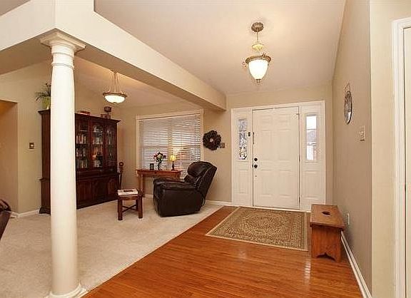 Come home to this amazing ranch with open and airy floor plan. Beautiful hardwood flooring welcomes you in the foyer. Formal dining room has architectural flair with column and plant shelves. Great room feels spacious with dramatic vaulted ceiling and Cozy wood burning fireplace flanked by windows...this might be your favorite place to hang out! Kitchen boasts tons of counter space with center island and eat-in breakfast bar. Also features stainless steel appliances and beautiful new laminate flooring that flows into the breakfast room and main floor laundry. Master suite has luxurious bath with double vanities, soaking tub and separate shower. 2addl bedrooms and main floor bath also on this level. The lower level is finished with a huge family room and office both newly carpeted. Outside is a big deck that back to trees. Great subdivision & minutes from the National Blue Ribbon award winning Elem school. Home warranty provided. Subd has pool & tennis courts