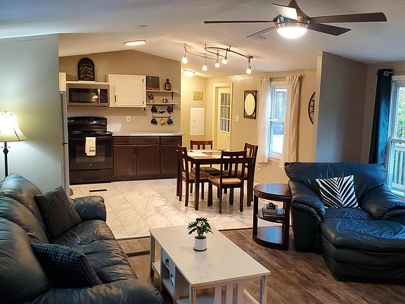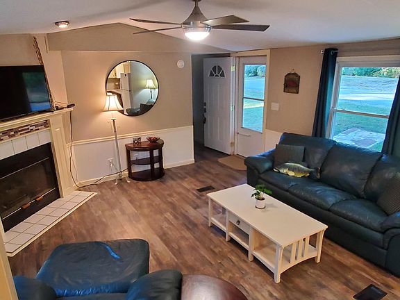 Whether you're looking for a home away from home or a short term rental investment, this newly renovated, fully furnished 1500 square foot manufactured home is move in ready! Located within walking distance of Arrowhead marina and a half mile from a public boat launch, it's a fisherman's dream, with plenty of room to park your boat on the large corner lot. Recent improvements include a new A/C unit, new gutters, new decking, all new interior paint and light fixtures, new Corian countertops, 50% new flooring, and a renewed primary suite with redesigned and upgraded bathroom which includes a 5 foot shower and double vanities and a private toilet room. There are two full bathrooms and bedrooms featuring a desirable split bedroom layout as well as a smaller bedroom without a closet. Enter through the front door or up the side deck, which leads to a bright sun porch and a back balcony. The .68 acre property includes a carport, a large cabin-type storage building(tiny home potential?) and a shed.