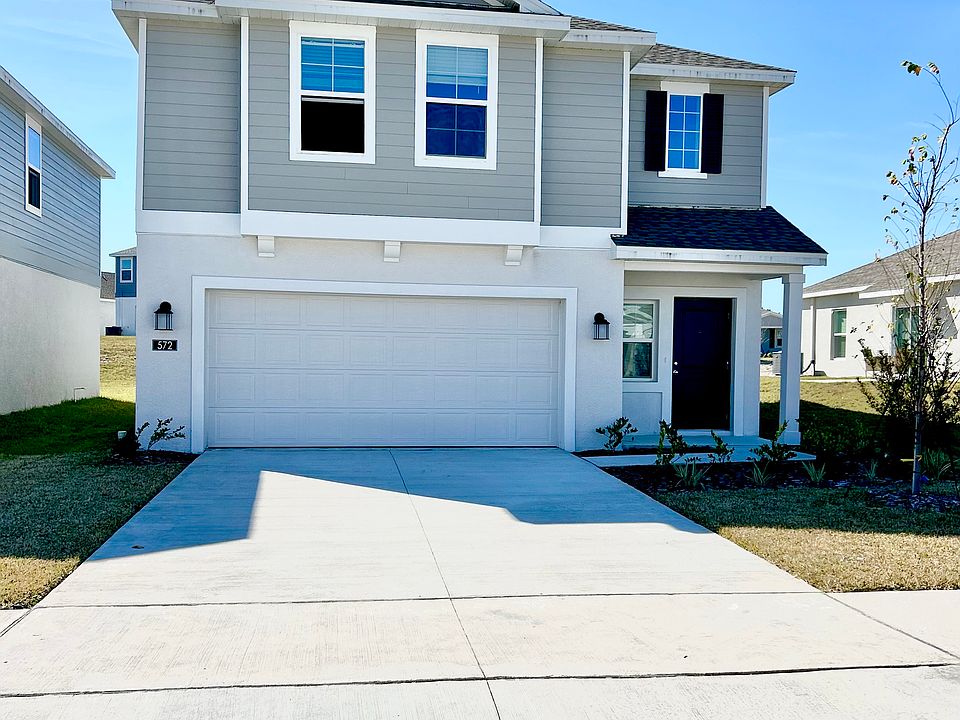 This almost 1900 sq ft beautiful two-story home features four bedrooms, two and a half baths, and a two-car garage. The perfect plan with the perfect color scheme makes this home stand out compare to others that are similar. It provides an open floor plan with great room, dining room, and kitchen with large island. The kitchen features ample counter space, and generous pantry. The casual dining area allows outdoor access to a large backyard via sliding glass doors. The second floor includes an owner's retreat featuring an owner's bath with large walk-in shower, dual vanity, and spacious walk-in closet. Three additional bedrooms, a bathroom, a spacious loft, and laundry room finish off this beautiful home. This home comes fully equipped with Everything Included Features like new appliances, solid surface countertops throughout and oversized tile flooring in the wet areas. Peace Creek Reserve is a masterplan community of new single-family homes with a beautiful natural creek. Winter Haven is the chain of lakes city, with over 26 linked together by canal. There are lots of shops, restaurants, bike paths. Peace Creek Reserve is what you have been looking for. A safe small town feel with convenience, the perfect place to live.