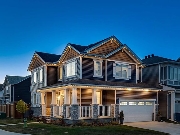 A gorgeous, almost-new home tucked on a quiet corner lot in one of Airdrie's most sought-after communities. With a desirable west-facing backyard that captures the afternoon and evening sun, this turnkey property is thoughtfully designed and loaded with upgrades inside and out. From the moment you arrive, the striking exterior stands out with Gemstone soffit lighting, a welcoming front veranda, and stylish architectural details that make a strong first impression. Step inside to find high-end luxury vinyl plank flooring, soaring 9-foot ceilings, and a bright, open-concept floor plan filled with natural light streaming through the many windows. At the heart of the home, the chef-inspired kitchen impresses with elegant matte grey cabinetry, sparkling quartz countertops, a large central island with seating, and premium appliances. The thoughtful design continues with ~ convenient side entrance, perfect for future basement development or private access. Relax and entertain in the spacious living area featuring a sleek linear fireplace framed by custom finishes - ideal for cozy evenings. Upstairs, a generous bonus room offers additional living space for movie nights, a playroom, or a home office. The home features three well-sized bedrooms, including a tranquil primary retreat with a beautifully finished en suite and walk-in closet. Upper-level laundry adds everyday convenience and includes upper level laundry. Outside, the fully fenced west-facing yard is ready for summer fun, complete with a storage shed and plenty of room to garden, play, or relax in the sunshine. Central air conditioning keeps the home cool and comfortable year-round. Located in a family-friendly area, this home is close to all levels of schools, parks, and everyday amenities, with easy highway access for commuters. Future development plans include new schools and another expanded Genesis Place recreation facility, making this an even more attractive long-term investment. Thoughtfully upgraded and meticulously maintained, 572 Southwinds Close SW offers a perfect blend of style, function, and value. Whether you're a growing family or a buyer seeking a move-in-ready home with modern finishes, this property delivers on every level.