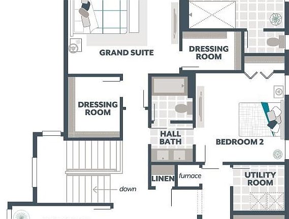 - Description: Primary suite w dual dressing rooms