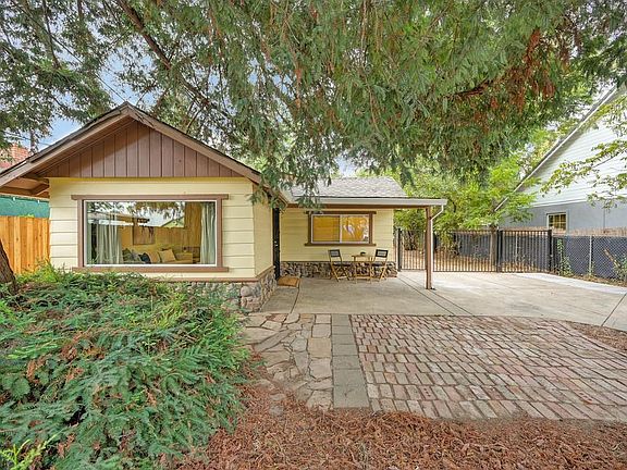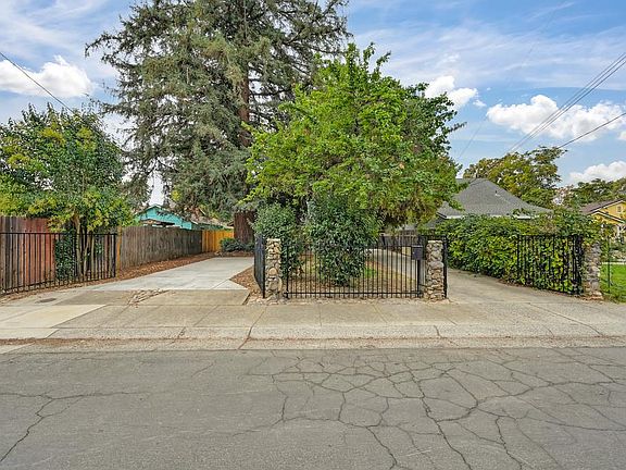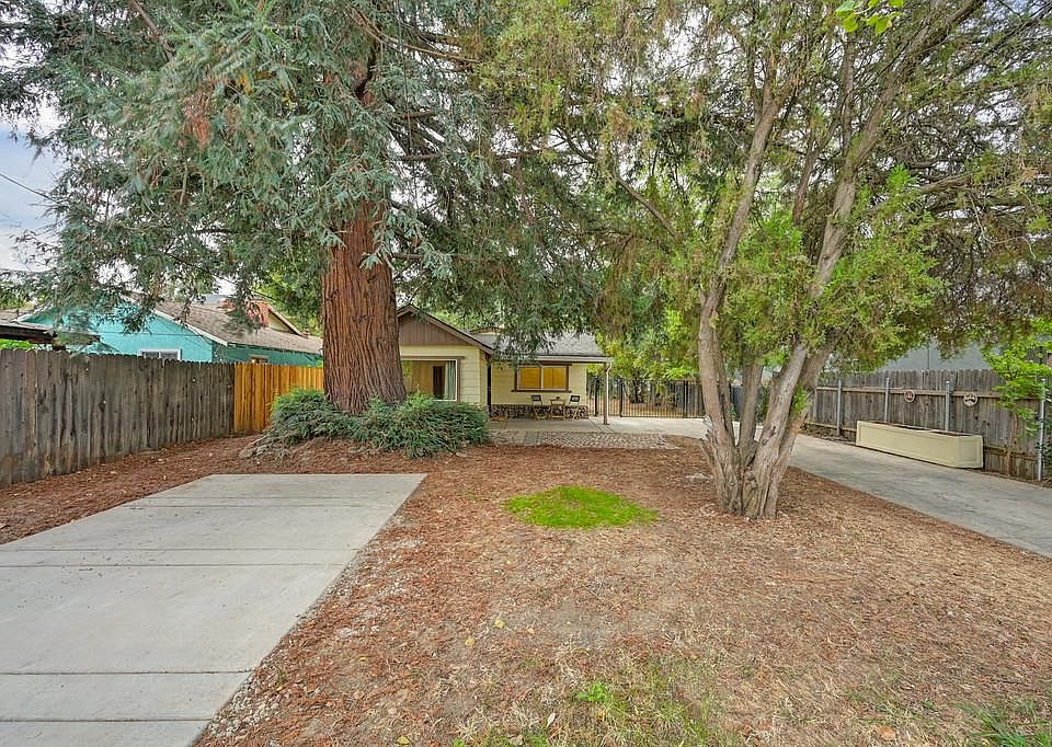 Nestled beneath the canopy of a majestic redwood, more than a century old, this charming two-bedroom, one-bathroom home offers both history and possibility. Sitting on a rare quarter-acre lot in Colonial Heights, the property is abundant with life: mature shade trees, stone fruit trees, and blackberry bushes, all adding beauty and bounty to the landscape. The gated front and back yards provide privacy and security, while the inviting covered front porch sets the stage for warm welcomes and quiet mornings. Practicality meets potential here too. Two separate driveways make parking and access a breeze, while an extra container storage unit adds room for tools, hobbies, or supplies. Inside, the living room's large picture window perfectly frames the soaring redwood, offering a view that changes with the light and seasons. The lot itself invites creativity: an urban garden, an ADU, a pool, or future expansion could all find their place here. Colonial Heights is one of Sacramento's hidden gems. Tree-lined streets, a beloved community library, and neighbors who look out for one another. It's a place where old-world charm meets new ideas, making it perfect for those ready to write their own story. See this home not just for what it is but for the potential of what it can become.