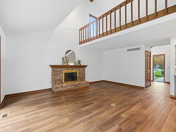 Welcome home to the Lakes of Buckingham! This quiet villa community provides access to walking paths, association pool, clubhouse and pickle ball court. This home that was cherished by a family for many years has been beautifully updated and is ready for you to just move in! Inside you'll find professionally painted cabinets with new quartz counter tops, backsplash and stainless steel appliances in the kitchen. You'll appreciate new light fixtures and ceiling fans throughout the home as well as updated plugs & switches. There is all new LVP flooring and carpet. Both the walls and ceilings have been freshly painted to brighten up the space. The primary first floor bedroom features a new tile shower and quartz vanity top with updated plumbing fixtures. Access your private deck with a pond view through the bedroom or from the slider in the living room. You'll love the open concept feel in the heart of the home with vaulted ceilings and wood beams while the brick fireplace provides a great focal point for gathering with loved ones. Upstairs, the loft gives you additional living space as well as another bedroom with ensuite bathroom and walk-in closet. You can access the attic storage easily from the closet (no steps or pull down ladder). The basement adds so much practical space to this home, as well! There is a small kitchenette with a gas range and spot for a second refrigerator. A full bathroom and large finished space gives you so many options for everyday life and entertaining. There is also a room that could serve as an unofficial 3rd bedroom, office space or craft area. With the association managing mowing, irrigation, snow and leaf removal, you'll just get to enjoy the pond view from your back deck. Come stop by to see this home yourself. We think you'll love it here!