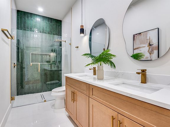 Each bedroom is thoughtfully designed to be spacious and inviting, while the bathrooms make a bold statement with beautiful olive-green tile, accented by gold and black fixtures that strike the perfect balance between modern and timeless.