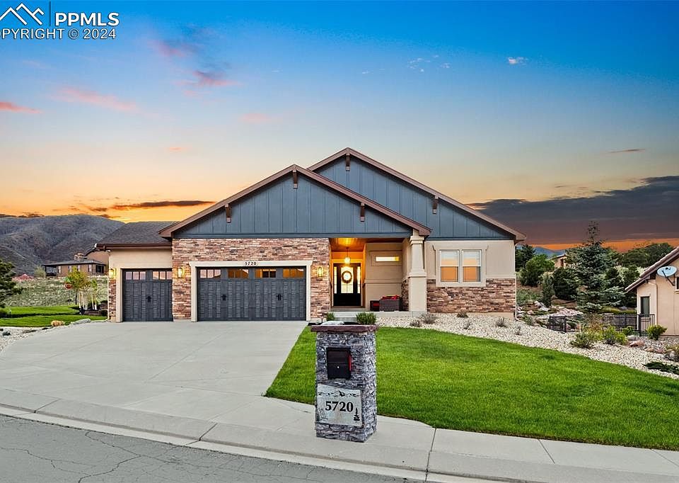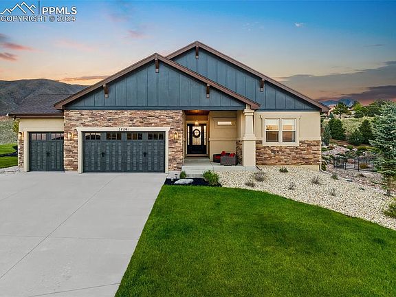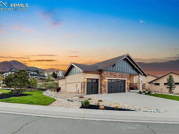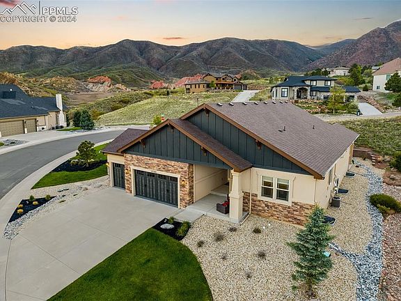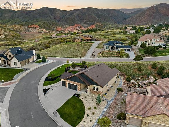 A Mountain Shadows Masterpiece by VANTAGE HOMES, recognized in the top 25% for Highest Customer Ratings and awarded "Best Of" builder in Colorado Springs multiple years. This home offers YOU unparalleled luxury, refinement, and quality. Situated on a stunning .42-acre fully landscaped corner lot, the majestic mountain backdrop creates a picturesque setting that welcomes you from the moment you arrive. As you step through the stately high-end front door, you'll be captivated by the stylish upgrades and thoughtful design enhancements throughout this 5 bedroom 4766 sq foot home. The beautifully designed Laundry/Mud/Garage Entrance features gorgeous cabinets, flooring, and countertops, maximizing both utility and elegance. The expansive Primary/Master Suite is a sanctuary of its own, boasting an open 5-piece master bath with breathtaking mountain views, an ultra-luxurious closet space with a floor-to-ceiling glass lighted shoe display, and custom touches that truly elevate the space. Experience the allure of main-level living with an open-concept design. The chef's kitchen is a culinary dream upper-end stainless steel appliances, featuring a butler's niche, a large granite dressed island w/additional seating design, separate dinning & seamless walk-out to the covered rear entertaining patio. The magazine-worthy modern living room showcases a beamed ceiling with elegant lighting, a stone fireplace, bold hearth, and mantle framed by opulent custom shelving and decor space. Lower Level: provides two large guest space bedrooms a full bath & family friendly comfort space w/ a well-appointed wet bar. Centrally located for ease of access to I-25 minutes from Garden of the Gods, Flying W-Ranch & Downtown Colorado Springs. This property is designed to captivate and impress, making you feel instantly at home. Schedule a visit today, and discover why calling this masterpiece your home will be effortless.