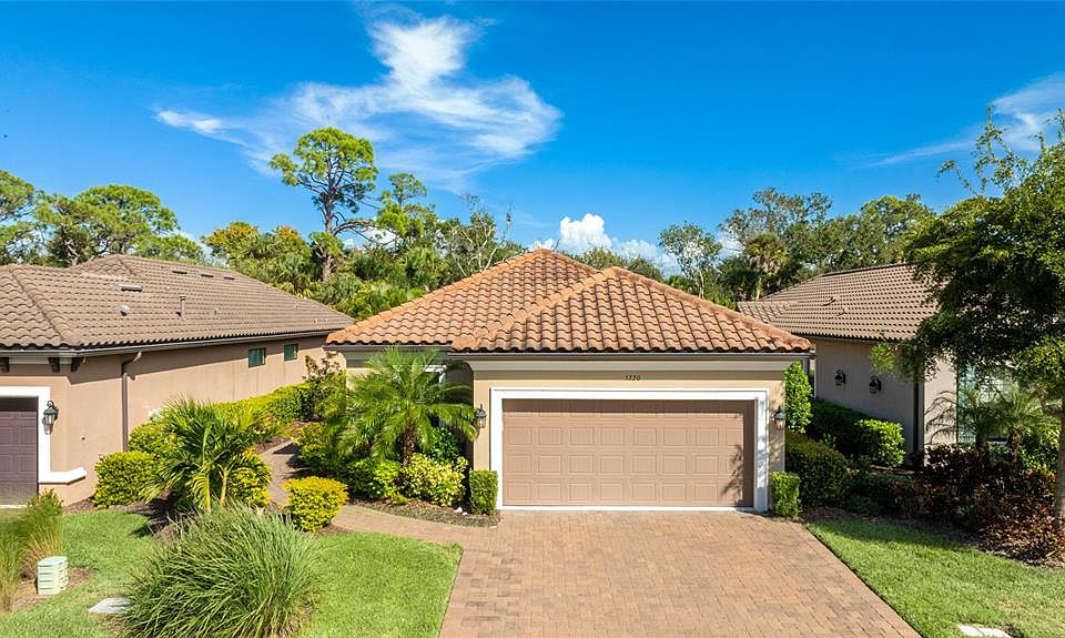 Welcome to Bellacina by Casey Key — A sought-after gated Esplanade community offering luxury, resort-style living just minutes from the Gulf Coast. Built by Taylor Morrison, this beautifully appointed Arezzo model combines timeless elegance with modern comfort. From the moment you arrive, the home impresses with its extended paver driveway, manicured landscaping, and inviting curb appeal. Step inside to discover a spacious open-concept design highlighted by soaring 10-foot ceilings, 8-foot doors, stunning crown molding, and graceful tray ceilings that enhance the home’s open, airy feel. The gourmet kitchen is a showpiece, featuring sleek quartz countertops, bright white cabinetry with gray subway tile accents. Cabinetry has custom-built pull-out shelves, Café stainless steel appliances including a gas range, a breakfast bar, and a pantry, ideal for both everyday living and entertaining. The dining room is perfectly integrated with the kitchen, which features an elegant tray ceiling for added architectural charm. The expansive great room flows effortlessly to the extended screened lanai, creating the perfect setting for relaxing or hosting guests in true Florida style. The backyard is lushly landscaped for ultimate privacy, providing a peaceful retreat surrounded by nature. The owner’s suite is a tranquil haven with tray ceilings, a custom-built closet with lighting, and a spa-inspired bath featuring dual sinks and a large walk-in shower. Two additional spacious bedrooms and a full guest bath with dual sinks and a tub/shower combination offer comfort and privacy for family or visitors. The versatile den provides the ideal space for a home office or reading nook. Additional upgrades include freshly painted interior throughout, new carpet in the primary suite, and a large laundry room with added built-in shelving and laundry sink. The extended garage offers ample space for vehicles, hobbies, and storage. Equipped with brand new smoke and carbon monoxide detectors. This home is hurricane-ready with easy accordion hurricane shutters, Cavalier screen protection, and a generator plug installed for peace of mind. Bellacina by Casey Key residents enjoy maintenance-free living and world-class Esplanade amenities — including a resort-style pool and spa, fitness center, clubhouse, tennis and pickleball courts, bocce, fire pit, dog park, and direct access to the scenic Legacy Trail for walking and biking. All this, just moments from Casey Key and Nokomis Beach, shopping, dining, and vibrant downtown Venice. This exceptional home captures the essence of luxury coastal living — Combining elegant design, effortless comfort, and an enviable location in one of Sarasota County’s premier communities
