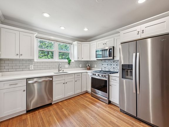 Upstairs, you'll find three well-sized bedrooms and a full bath illuminated by a skylight, along with hardwood flooring throughout. The lower level offers a flexible finished space with a second full bath, in-unit washer and dryer, and direct walk-out access to the backyard ideal for a home office, guest suite, or workout area.