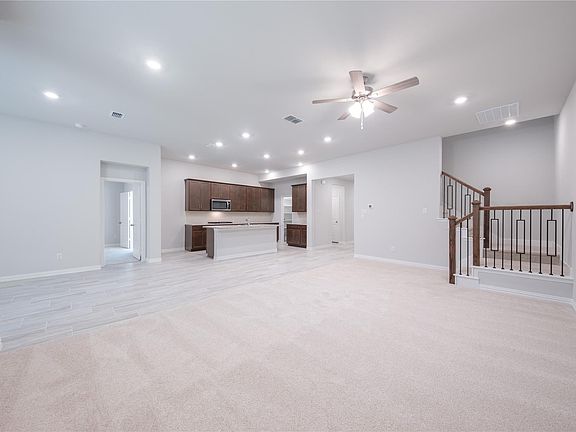 The modern kitchen is designed with granite countertops, rich hardwood floors, and 42-inch cabinetry, while the open floor plan creates a warm and inviting flow throughout the home. Energy efficiency is built-in with spray foam insulation, 2x6 exterior walls, and solar-ready construction, helping to keep utility costs low.