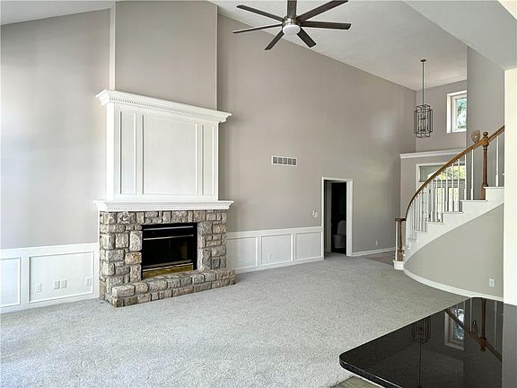 - Features: All Carpet, All Drapes/Curtains, Ceiling Fan(s), Fireplace