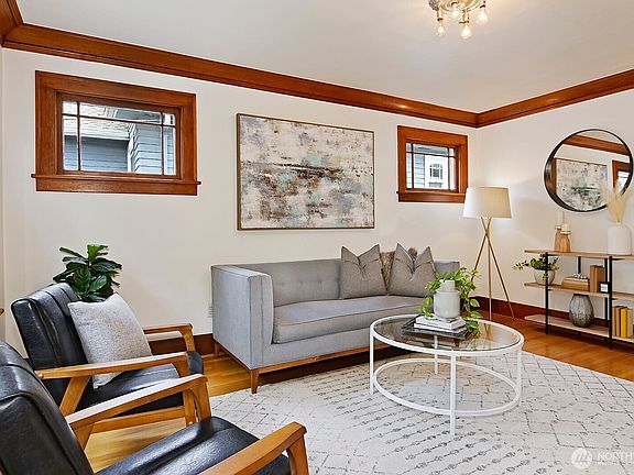 This classic Ravenna home offers the best of city living; easy access to U- Village, light rail, shopping, dining & recreation (Ravenna Park!). Vintage character & charm are on full display, formal entry, wood floors, mahogany trim, picture rail, & more! Main floor features a den w/ pocket doors, a large primary bdrm. w/spacious California closet, vaulted ceilings, plus another spacious bdrm. Fully finished basement has separate entry, 2nd potential primary bdrm. w/ WIC, Rec room, & 3/4 bath w/ heated floors & double vanity. Freshly painted & ready to move in! Updated systems. Stairs to unfinished attic= expansion potential and or storage.1 car detached garage. With high transit/walk scores- it’s easy to get here & you’ll be glad you did!