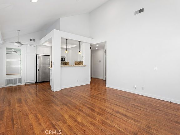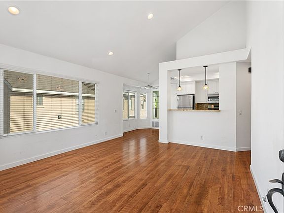Welcome home to the Canyon Glen community nestled in the hills of Orange. This 2 bedroom/2bath condo is a perfectly situated upper corner unit, located toward the back of the community where it is very quiet. The spacious family room has vaulted ceilings and flows seamlessly into the kitchen. The updated kitchen includes granite counters, stainless steel appliances with refrigerator included, pantry cabinets with pull out shelving and a breakfast nook with open shelving completes the space. The primary bedroom suite has a separate vanity, private bathroom and two large closets. The secondary bedroom has its own bathroom that doubles as the guest bathroom. A finished attic is accessed by the pull down staircase located in the hall. This is perfect for an office or extra storage and is not included in the square footage. Beautiful laminate flooring throughout the home makes for easy everyday care. Newer double pane windows and ceiling fans throughout the condo help with keeping your energy bills low. Inside laundry closet with stackable washer/dryer unit included. Attached single car garage is just down the stairs along with plenty of guest parking. Enjoy the resort style pool, spa and barbecues. Convenient access to Peter’s Canyon, Irvine Regional Park, Santiago Oaks Regional Park, the toll road and the 55/91 freeways.