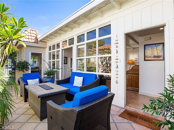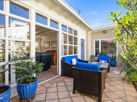 Located in the heart of Naples Island, this pristine 2 bed, 2 bath beach house offers the perfect blend of classic character and modern comfort. Originally built in 1949 and thoughtfully remodeled throughout, the home showcases mid-century design elements, including beamed and vaulted ceilings in the living room and a dramatic stacked-stone fireplace. A private courtyard entry opens to a beautiful outdoor entertaining space, seamlessly connected to the light-filled interior through French doors and a wall of windows. The updated kitchen features stainless steel appliances, custom backsplash, quartz countertops, and a charming built-in banquette dining nook. Both bathrooms boast custom tiled showers, and the two spacious bedrooms include a serene primary suite with attached bath. Move-in ready and just steps from the canals, shops, and dining—this is the ideal coastal retreat!