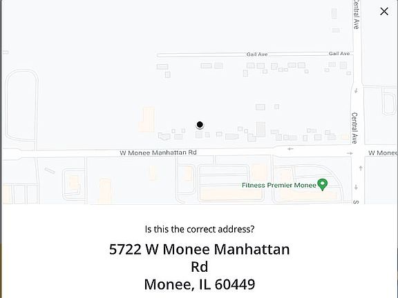 Three bedroom, one bath with a laundry room and a back porch. A large detached garage which all sits on a large lot in unincorporated Will county with a Monee IL mailing address. The Large 1.1 acre lot faces a busy street and may be incorporated into Monee Illinois and zoned commercial if desired.