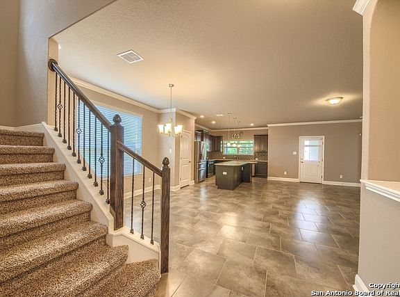 Welcome to this stunning rental home located in the desirable Alamo Ranch community! This spacious 4-bedroom, 3.5-bathroom property offers just over 2,900 square feet of comfortable living space and is available for immediate move-in perfect timing to settle in just before the Christmas holiday season. The primary suite is conveniently located downstairs and boasts generous dimensions (15x14), along with a large spa-like bathroom featuring dual vanities, a soaking tub, a separate shower, and a walk-in closet designed for maximum storage and organization. Upstairs, you'll find all secondary bedrooms, each offering ample space and comfort. The second floor also provides multiple living areas, including a versatile game room and a dedicated media room ideal for family movie nights, entertaining guests, or simply relaxing after a long day. The open-concept kitchen seamlessly connects to the dining and living areas, making it perfect for both everyday living and hosting gatherings. High ceilings and natural light enhance the welcoming atmosphere throughout the home. Step outside and enjoy a large covered patio, an excellent spot for outdoor entertaining, weekend barbecues, or relaxing with family and friends.