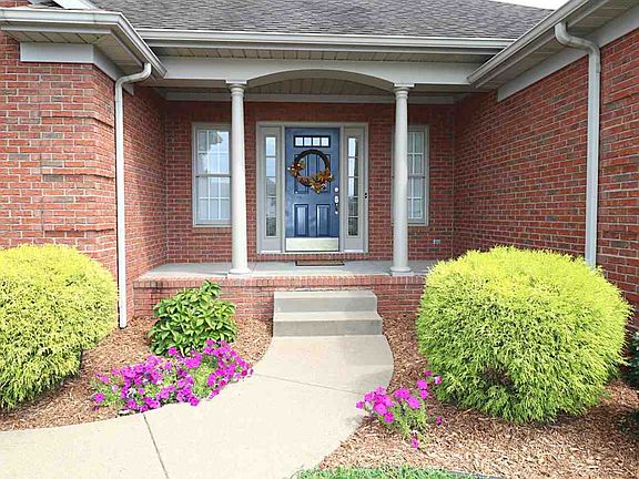 Welcome to this 3 bedroom, 2 bath brick ranch home with a split bedroom floor plan and an in-ground salt water pool in Keystone Subdivision. The Entry with wood floors opens to the Great room with wood floors, ceiling fan, vaulted ceiling and a gas log fireplace. The Great room is open to the large eat-in Kitchen with wood floors, eating bar, plenty of cabinets with a built-desk. Kitchen also features new GE range-oven and microwave. The Kitchen opens to the formal Dining room with a circle top window, for plenty of light and a large storage closet. This room would also make a nice office or playroom. Large Master bedroom features a walk-in closet and adjoining Master bath with 2 vanities, shower and corner tub. There are 2 additional bedrooms, one with a circle top window and vaulted ceiling and each bedroom has a double closet. The 2nd full bath is located near the 2 bedrooms along with 2 double closets for additional storage. The laundry room with pantry closet is conveniently located near the attached 2.5 car garage which is extra wide with a side service door and a storage area. The covered porch off of the Great room offers shade or a place for the grill while relaxing by the pool. Updates include: 2017 -GE slate range and microwave, 2016 - pool liner, converted to salt water and new GE slate dishwasher, 2015 - wood floors in Great room, kitchen and hall and carpet in the bedrooms. Keystone is a great neighborhood for walking, biking or fishing in the common lake. Easy access to shopping, Hwy 41 and I69. Includes a 1 year 2-10 Home Buyers Warranty.