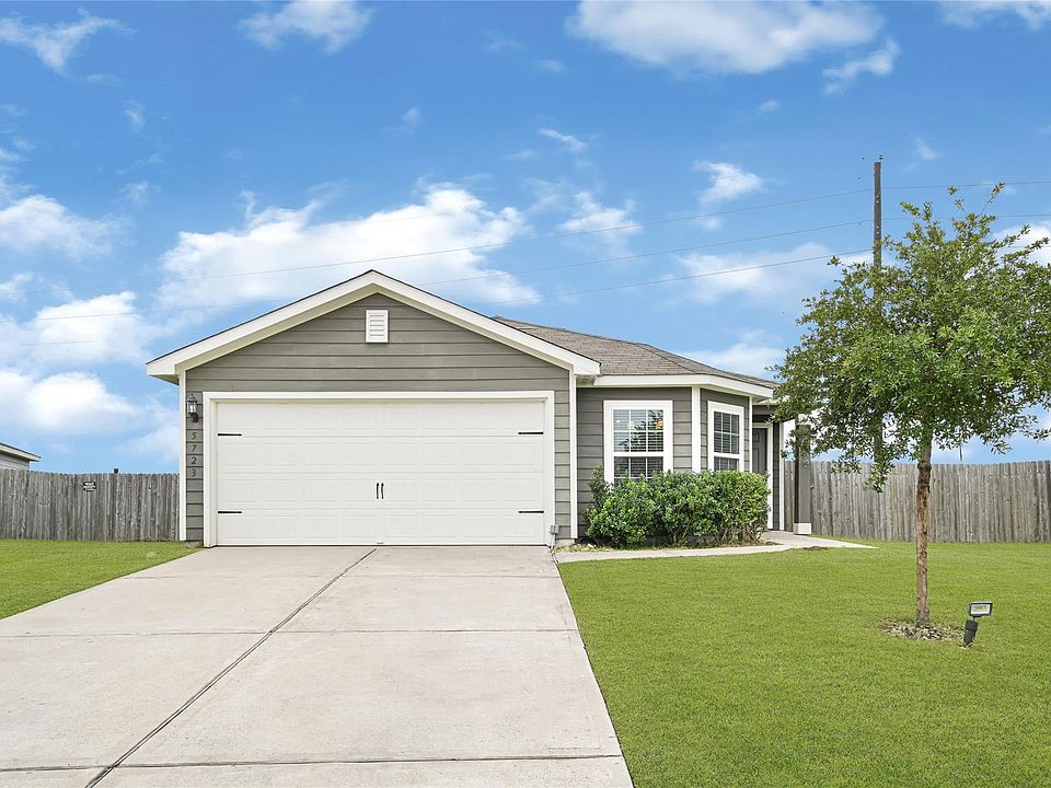 This charming 4-bedroom, 2-bathroom home features a 2-car garage, a spacious backyard, and a covered patio perfect for outdoor relaxation and gatherings. Inside, you'll love the stunning kitchen with wood cabinetry and granite countertops, designed for both style and function. Located in the highly sought-after Barbers Hill School District, this home offers privacy with no back neighbors and the benefit of exceptional schools. Refrigerator included. Lawn service is $100 per month payable with rent each month. Don't miss this opportunity schedule your private showing!