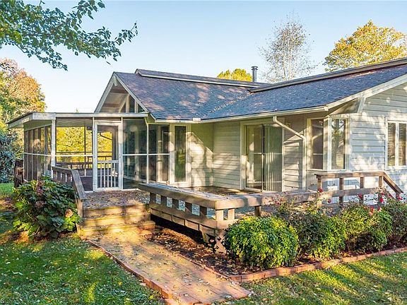 Welcome to this Mebane home built 1988 on 1.47 acre in the Southeast High School Zone, Only 5 minutes from Saxapahaw General Store & Island Park by the Haw River. Split Bedroom Floorplan 3 Bedrooms & 3 Full Baths, Unique Kiln Fired Saltillo Tile in Foyer, Kitchen, Laundry, Dining & Living Room, Vaulted Living Room w/ Wood accents, Mid Century Modern feel with lighting and sliding glass doors, large corner windows to large 19x12 Screen Porch & Deck, Wood Burning Fireplace & Built In Shelves. Master Bedroom with laminate floors has sliding glass door to large deck 15x17, Walk In closet, Master Bathroom w/Double Sinks and Tub/Shower. Kitchen has Dishwasher, Stainless Range, Microwave & Refrigerator. Connected off foyer is the fabulous In-law Suite added in 2011, Small sink with Cabinets in one corner, Sliding Glass Door to Small Screen Porch, Full Bath w/ Walk In Shower, Walk In closet. 2 Car Attached Garage. HVAC 2022. Storage Shed 10x12.